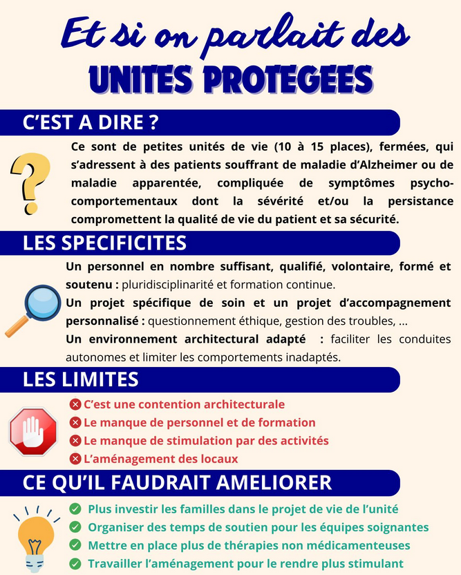 Cela m’a donné l’idée de réaliser cette infographie sur les unités protégées en EHPAD pour mieux comprendre ce concept.