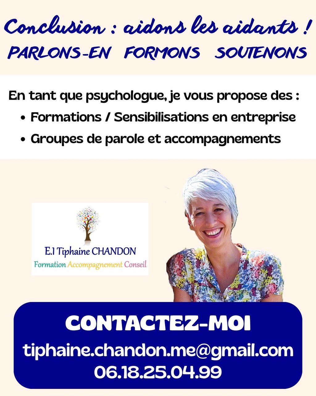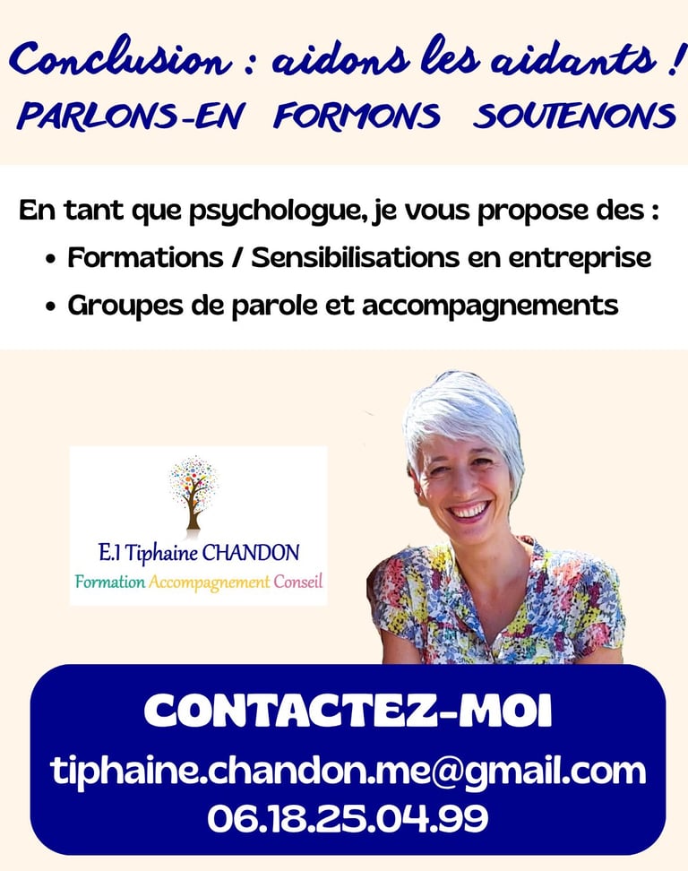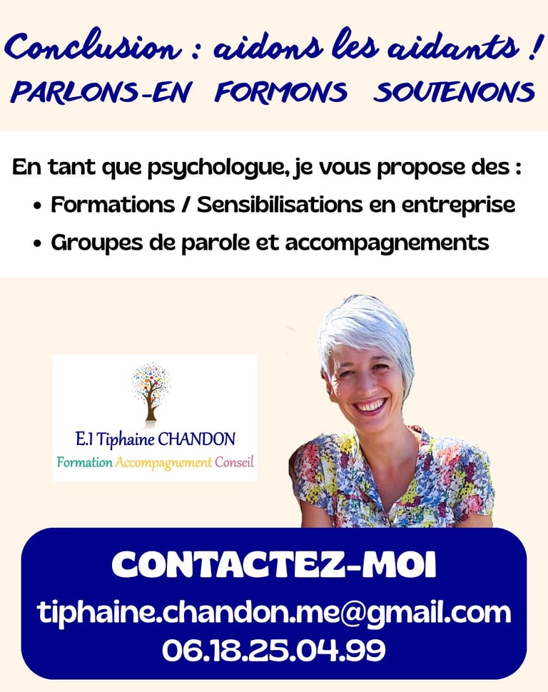 Je me tiens à votre disposition pour former et sensibiliser vos collaborateurs, ou proposer des temps d'écoute et de soutien aux aidants que vous accompagnez.