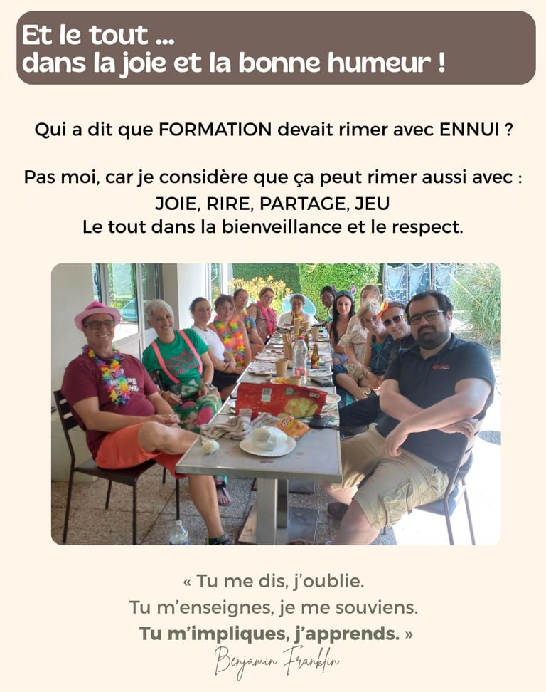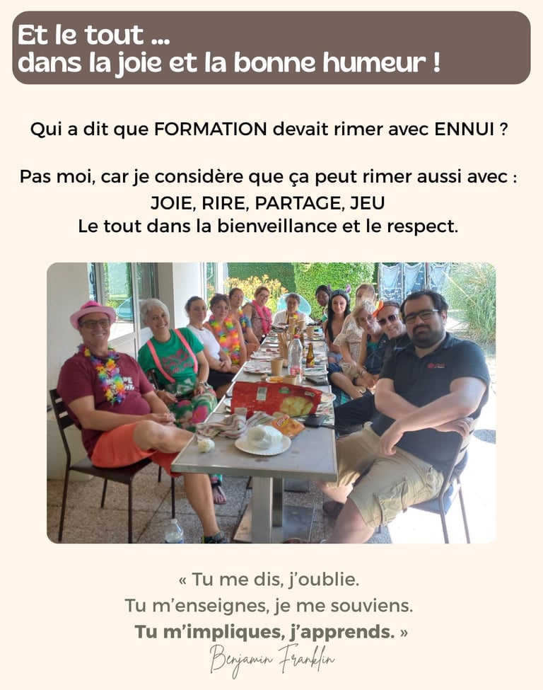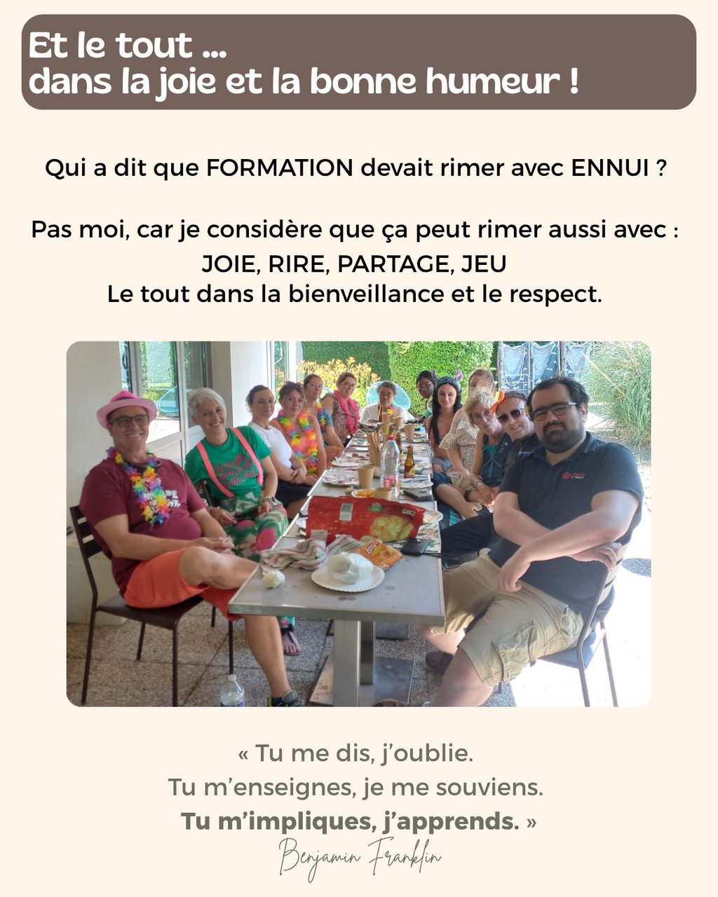 Fin juin j’ai clôturé un 2nd cycle de formation d’Assistants de Soins en Gérontologie pour le compte de FORMAVENIR PERFORMANCES qui m’a fait confiance pour être leur formatrice « fil rouge » c’est-à-dire une formatrice référente, présente tout au long du cursus pour accompagner les stagiaires.